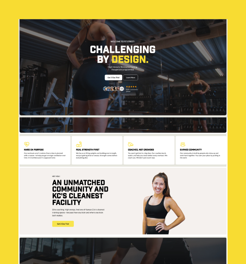 Fit Street was invisible online. Old website, boring content, no system to bring in new members. We rebuilt everything from the ground up. New brand, better content, automated lead machine. Now, Fit Street is seeing an average of 10+ leads per day.